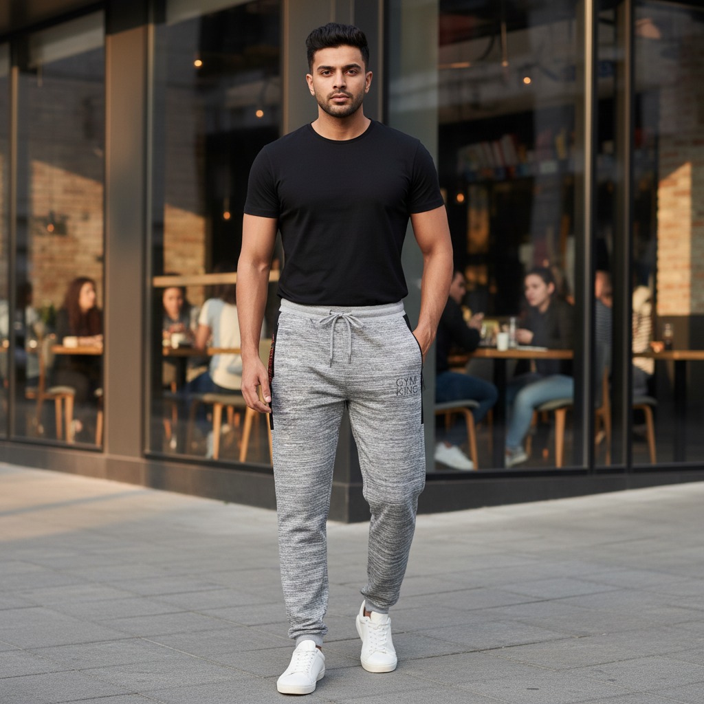 GYM KING Men’s Jogger Trousers | Premium French Terry Fabric | Stylish Grey Melange Slim-Fit Sweatpants for Gym, Sports & Casual Wear