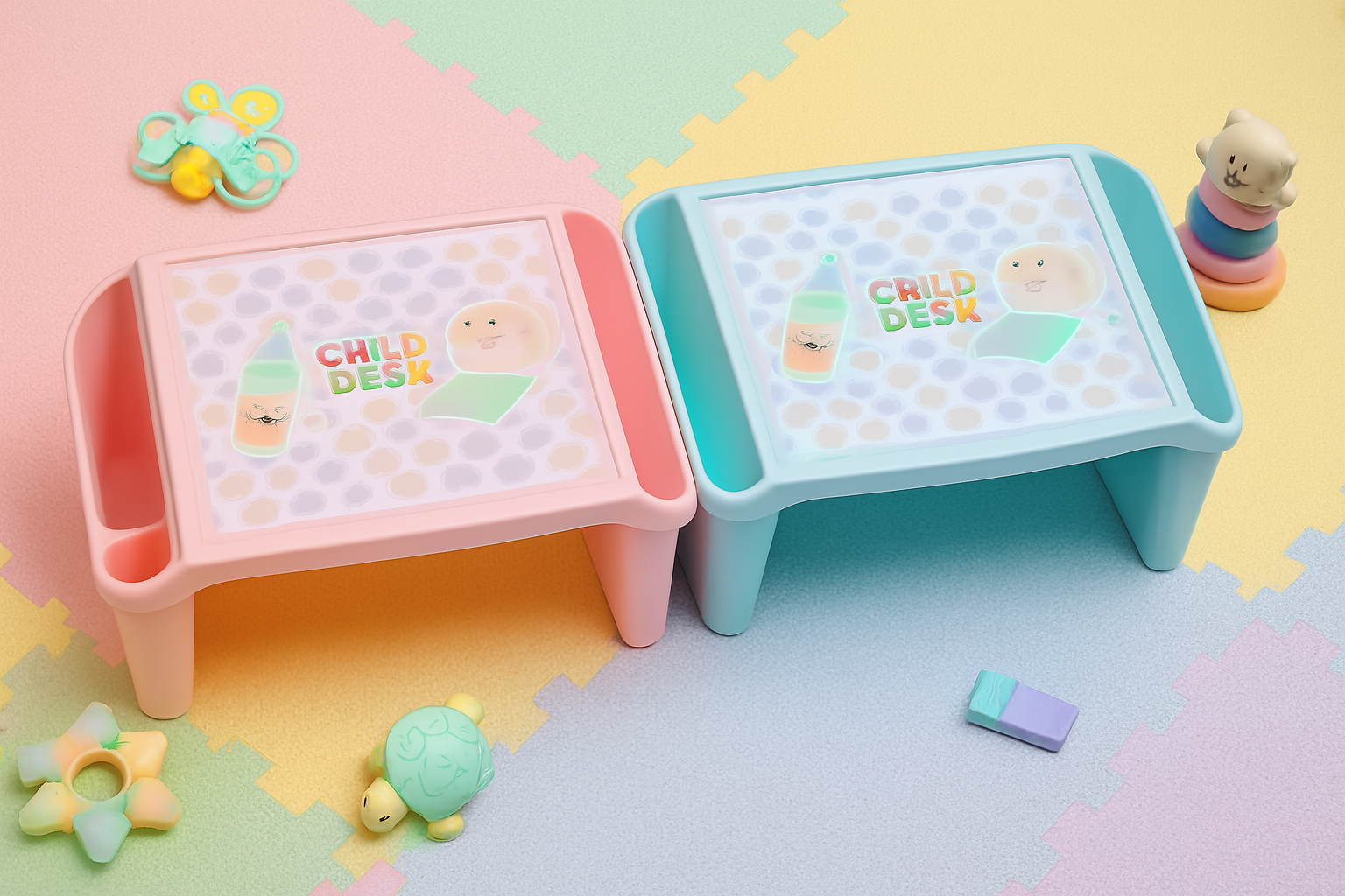 Kids Portable Study Table – Multifunctional Plastic Desk with Side Storage (Random Color)