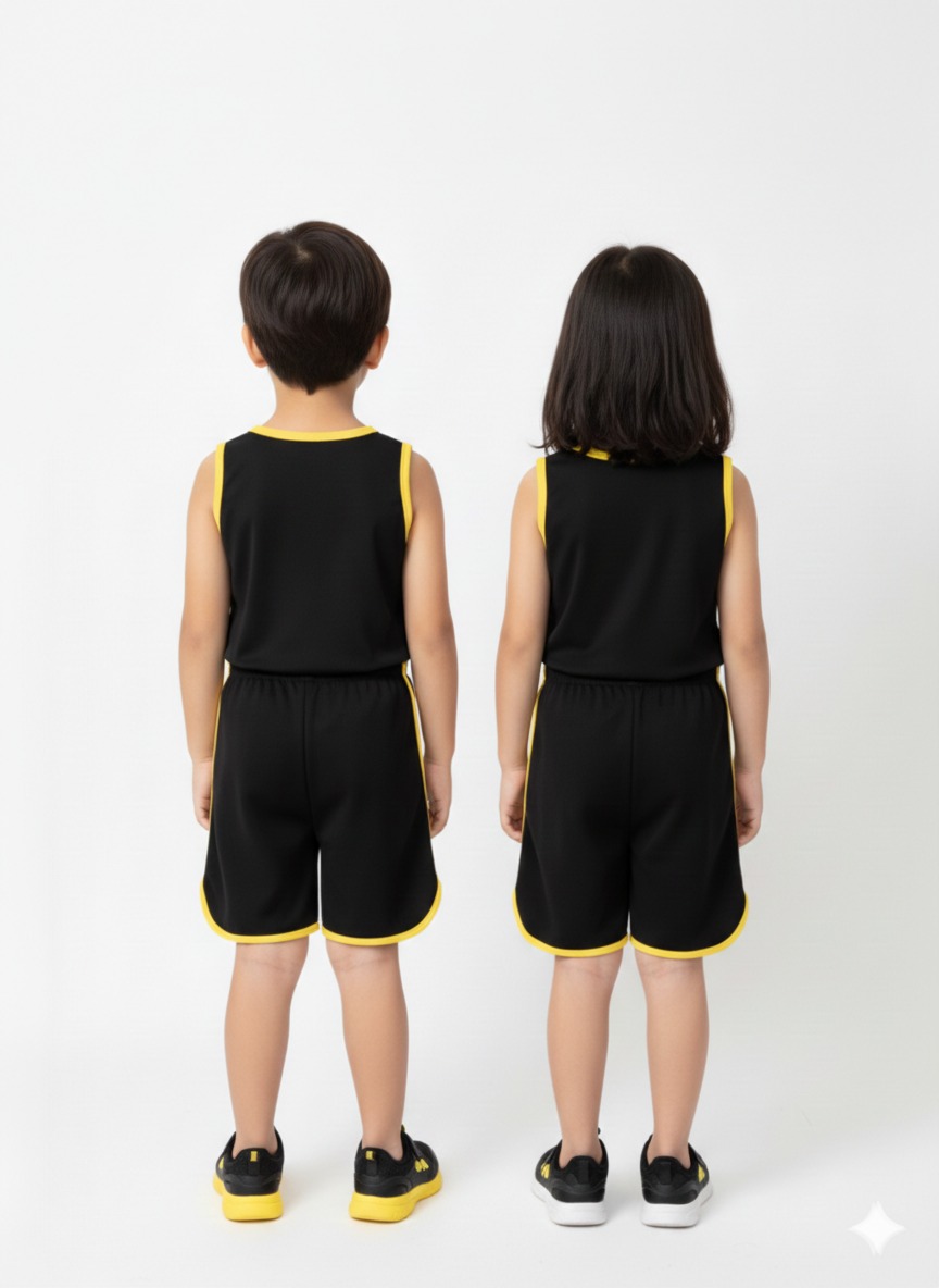 This Kids Sando and Shorts Track Suit (2 Pcs Set) is designed to provide comfort, freedom of movement, and a stylish sporty look.