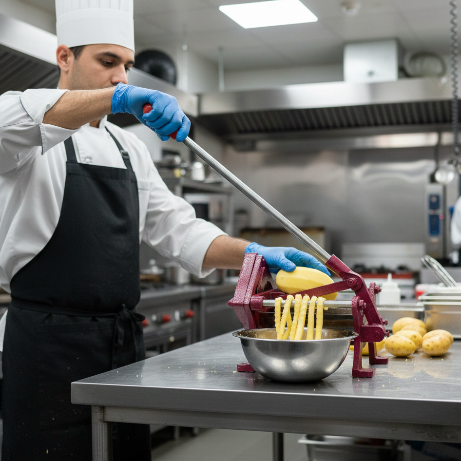 Its ergonomic handle design allows smooth, easy pressing with minimal effort, while the sharp stainless-steel blades provide clean and uniform cuts. Ideal for potatoes and other vegetables like carrots, cucumbers, and zucchinis, this versatile tool is perfect for homes, cafés, food stalls, and restaurants.