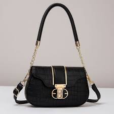 This sophisticated Croc-Embossed Shoulder Bag is the ideal accessory for the modern woman seeking style and functionality. Crafted with a premium faux leather material, the bag boasts a beautiful, realistic crocodile-skin texture that exudes luxury. The distinctive front flap is secured by a bold, circular gold-tone geometric buckle, which acts as a stunning focal point.